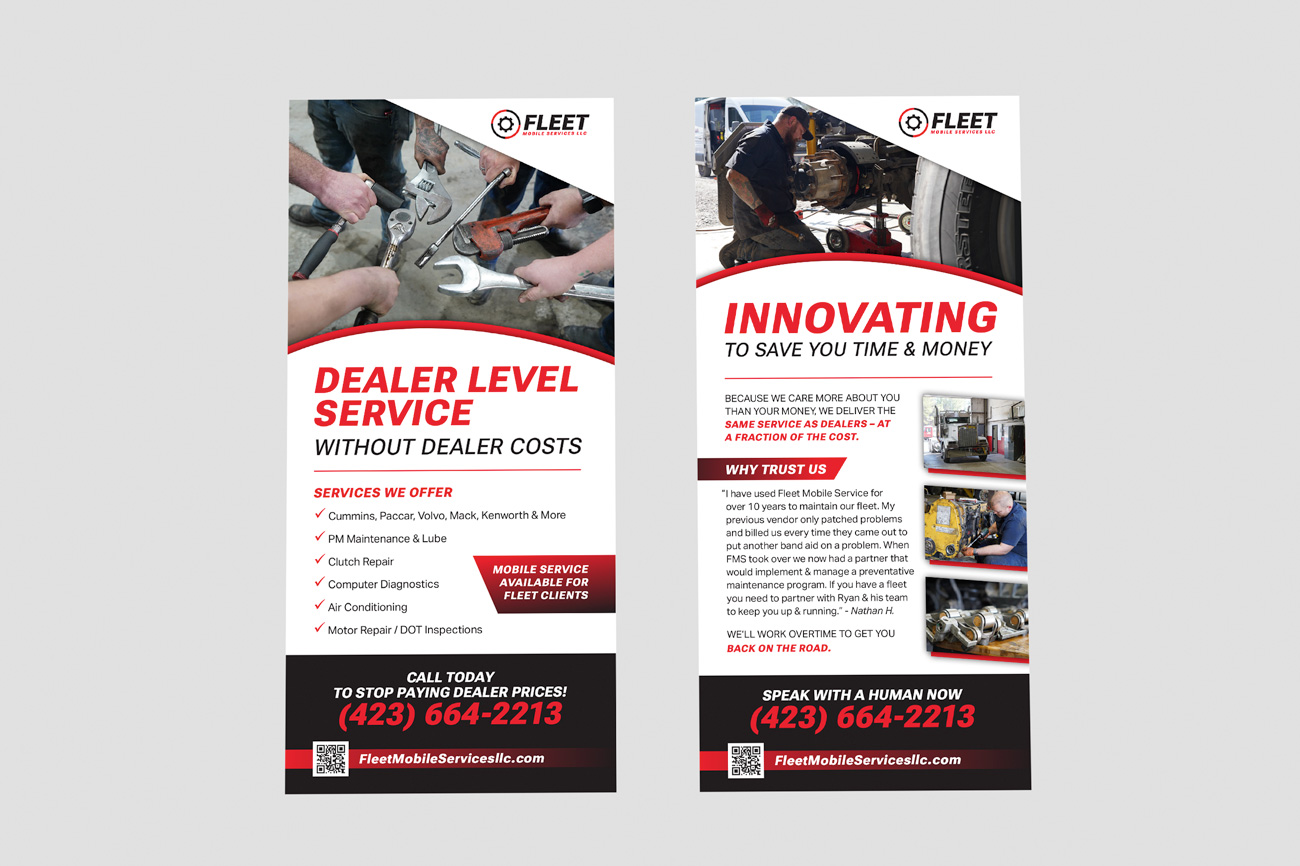 Designed rack cards and flyers for local distribution (e.g. trucking offices, repair shops)