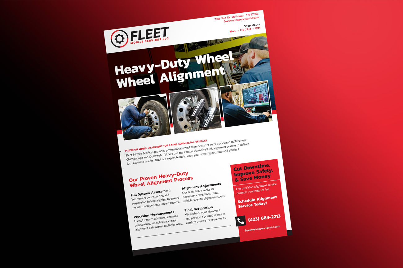 Fleet Mobile Services had relied on a legacy website for 8–10 years, and over time it became clear that it was no longer effective in attracting new clientele. Their visual identity was outdated, and they lacked cohesive marketing materials to communicate credibility. We were brought in to modernize their brand, refresh their entire visual presence, and build a digital platform that would help them stand out in a competitive mobile fleet repair market.